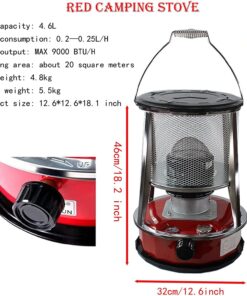 Indoor Kerosene Stove Adjustable Firepower Space Kerosene Heater Camping Stove Glass Burner Large Multifunctional Stove for Indoor Outdoor Camping Fishing (Color : Red-4.6L)