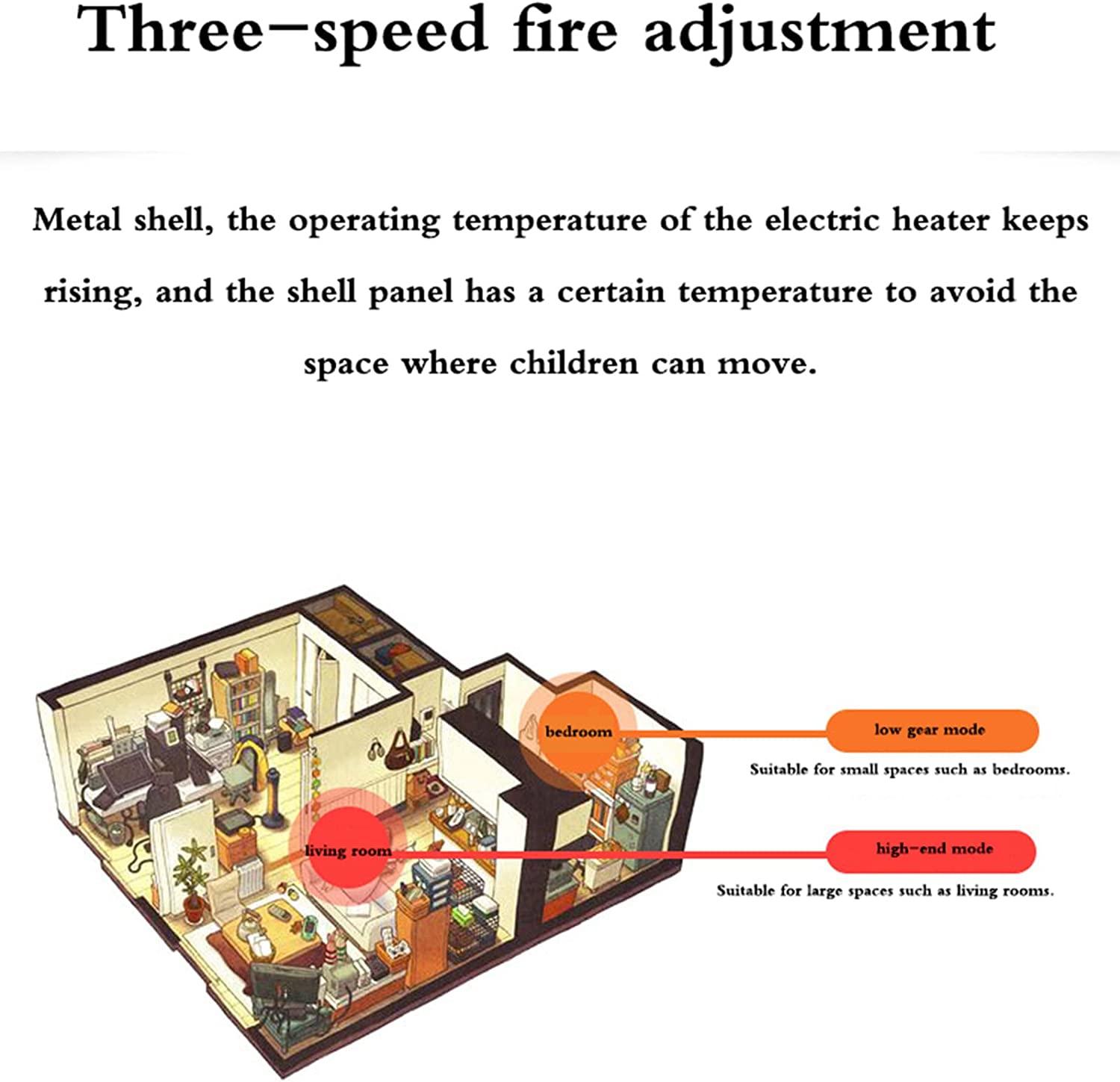 - 【Three-speed fire adjustment】Ceramic hair adjusts heat, and adjusts the temperature by moving the environment at any time. Metal casing, the operating temperature of the electric heater keeps rising, and the casing panel is used at a certain temperature, try to avoid the space for children to move.