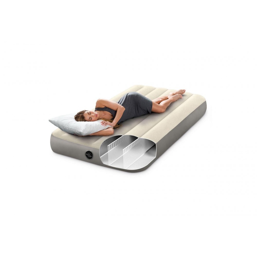 - Inflatable twin airbed for home or outdoor use engineered with Fiber-Tech interior construction
