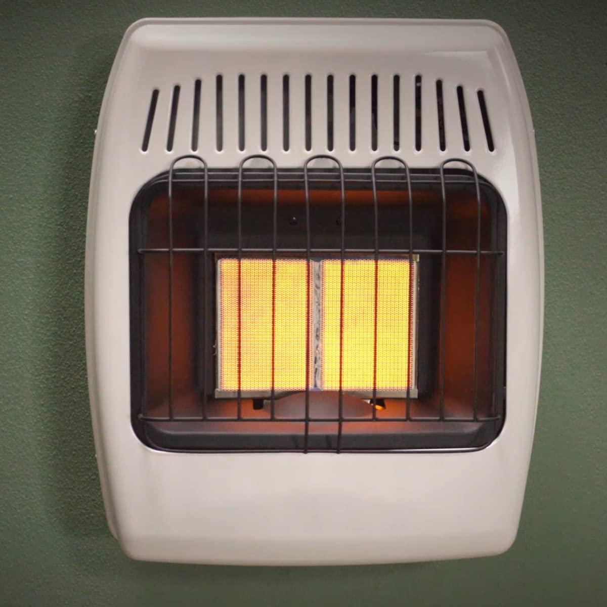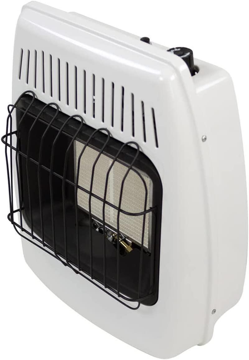 12,000 BTU Propane / Natural Gas Wall Heater for Indoor Use – Dual Fuel, Vent-, with Standing Base Legs, white