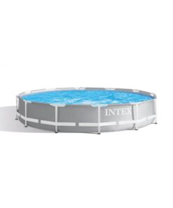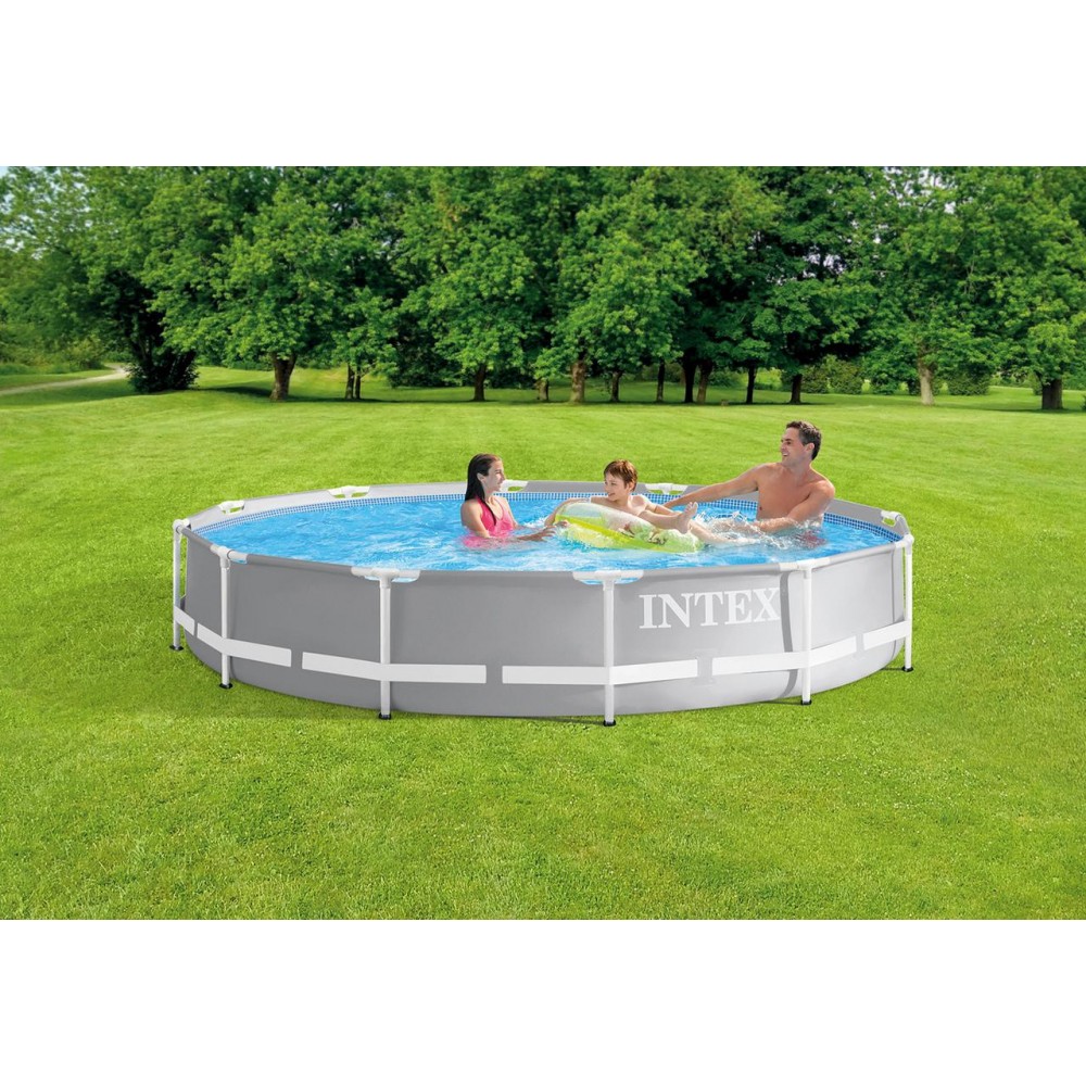 Enjoy hours of outdoor fun with the Intex® Prism FrameTM 12ft X 30in pool. It is constructed with puncture-resistant 3-ply durable material. It features all of the great benefits of Metal Frame pools, and are enhanced with strong powder-coated steel tubing and stylish and upscale looking liner color. Hydro Aeration® Technology is incorporated into the cartridge filter pump providing improved circulation and filtration, improved water clarity, and increased negative ions at the water surface. Follow these 3 steps for easy assembly. 1) Lay out the liner for your pool on flat, level ground. 2) Assemble the frame for your pool. 3) Fill your pool with water and enjoy. It comes with a 530 gal cartridge filter pump. Water capacity is 1,718 gallons (90%) and it is ready for water in 30 minutes.