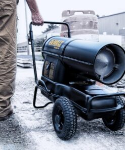 The DXH135HD thermostatically controlled forced air kerosene heater burns at 135,000 BTU/HR and can be used with kerosene diesel, fuel oil or JP-8 fuels. With a included wheel kit, protective roll cage and an 14 gallon tank you will get a full 14 hours of run time and the ability to heat up to approximately 3375 square feet of space.