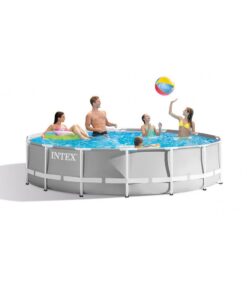 Enjoy hours of outdoor fun with the Intex® Prism FrameTM 14ft X 42in pool. It is constructed with puncture-resistant 3-ply durable material. It features all of the great benefits of Metal Frame pools, and are enhanced with strong powder-coated steel tubing and stylish and upscale looking liner color. Hydro Aeration® Technology is incorporated into the cartridge filter pump providing improved circulation and filtration, improved water clarity, and increased negative ions at the water surface. Follow these 3 steps for easy assembly. 1) Lay out the liner for your pool on flat, level ground. 2) Assemble the frame for your pool. 3) Fill your pool with water and enjoy. It comes with a 1,000 gal cartridge filter pump, ladder. Water capacity is 3,357 gallons (90%) and it is ready for water in 45 minutes.