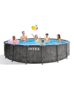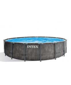The new 15ft x 48in Intex® Greywood Prism FrameTM Premium Pool features a sophisticated woodgrain pattern that gives it a beautiful look and feel that will complement any backyard. The sturdy frames and the innovative new Polymer T-joints ensure durability and quick and easy assembly. It is constructed with puncture-resistant 3-ply durable material. Hydro Aeration® Technology is incorporated into the cartridge filter pump providing improved circulation and filtration, improved water clarity, and increased negative ions at the water surface. It comes with a 1,000 gal cartridge filter pump, ladder. Water capacity is 4,440 gallons (90%) and it is ready for water in 45 minutes.