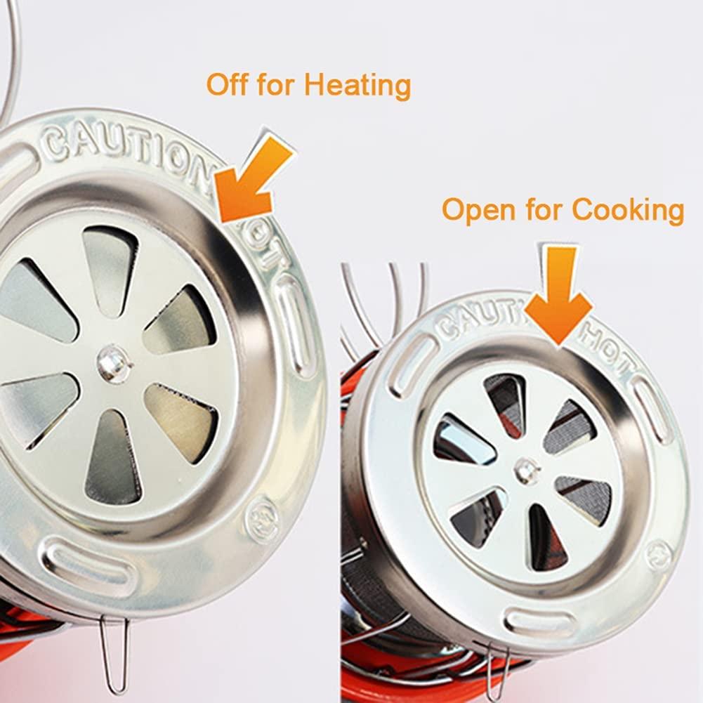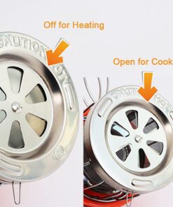 - Multifunctional stove and heater design, can be used for heating, cooking and barbecue grilling etc.Easily switch warming/cooking mode.