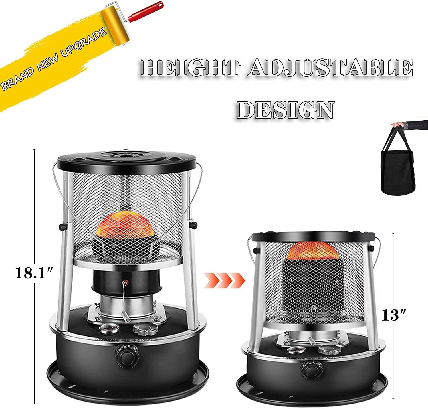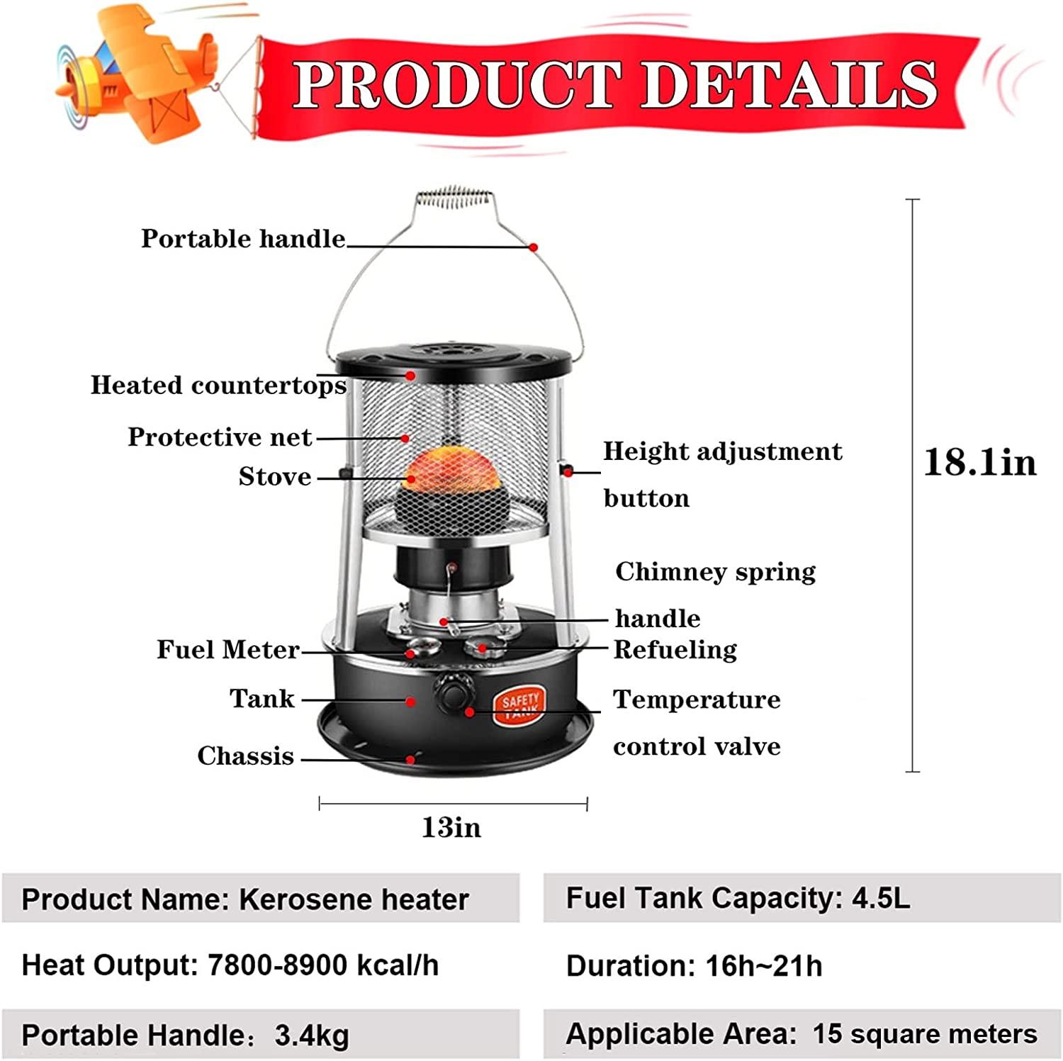 4.5L Portable Kerosene Stove Heater For Indoor Use, 9000 Btu/h Heaters Indoor Portable Non Electric Heaters For Outdoor Patio Camping Ice Fishing Survival Emergency – Height Adjustable 13′′~18.1′′
