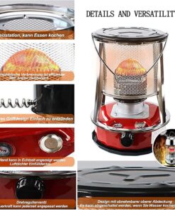 - Energy-saving design: Compared with electric heaters, the kerosene heater quickly heats up the temperature of the room without drying out the room. It is also very helpful during power outages or disasters.