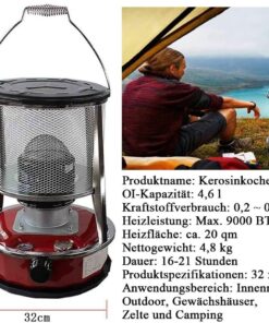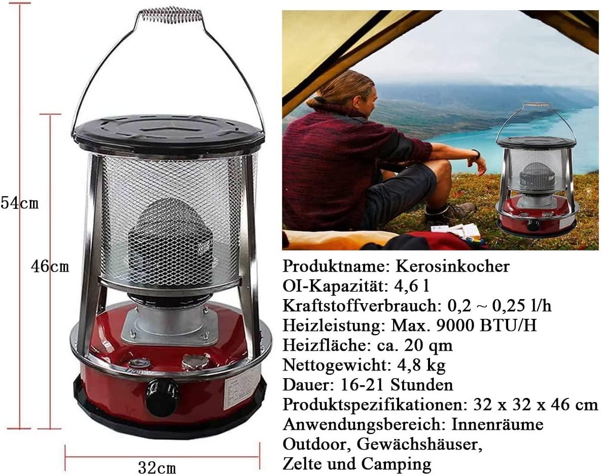 - ❦Heating function: The maximum calorific value of the kerosene stove is 9000 BTU/H, the calorific value is high, and the heating area is large. The heating area can cover a space of 20 square meters.