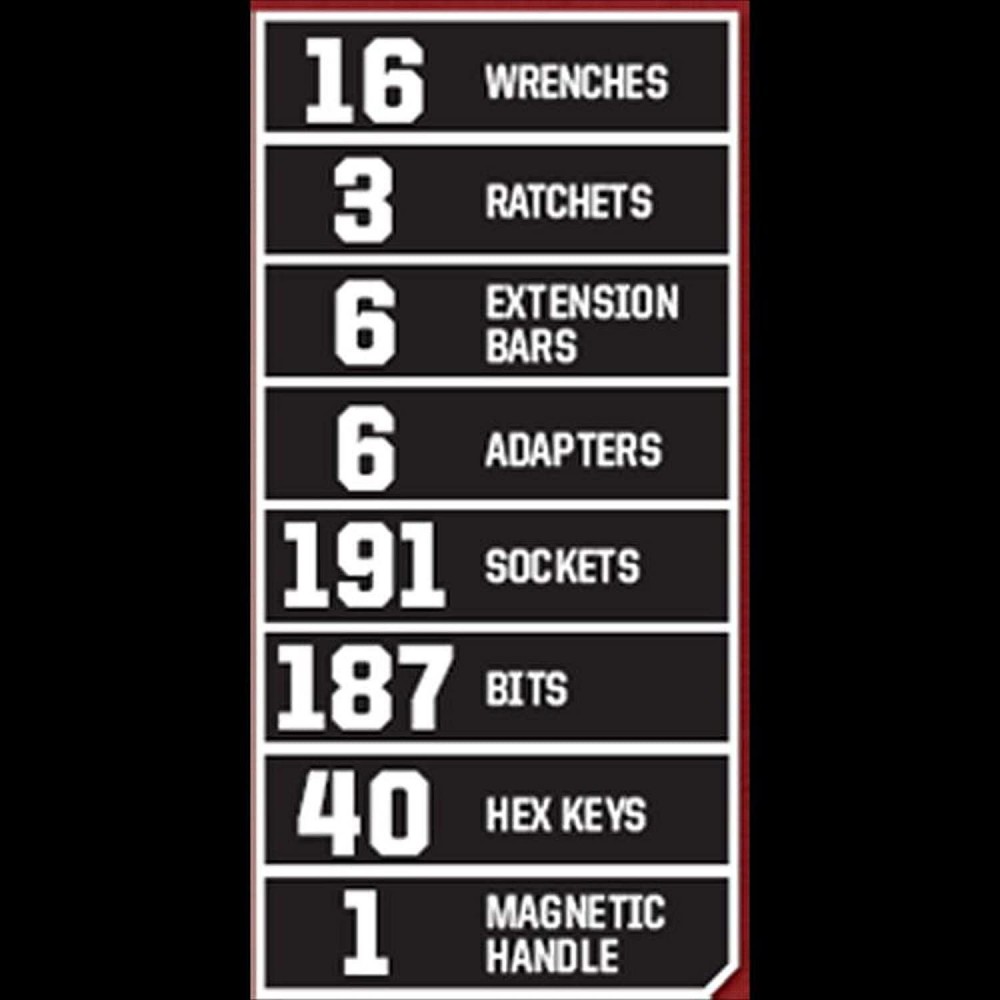 • 191 sockets, 6-point, 8-point and 12-point, in both inch and metric