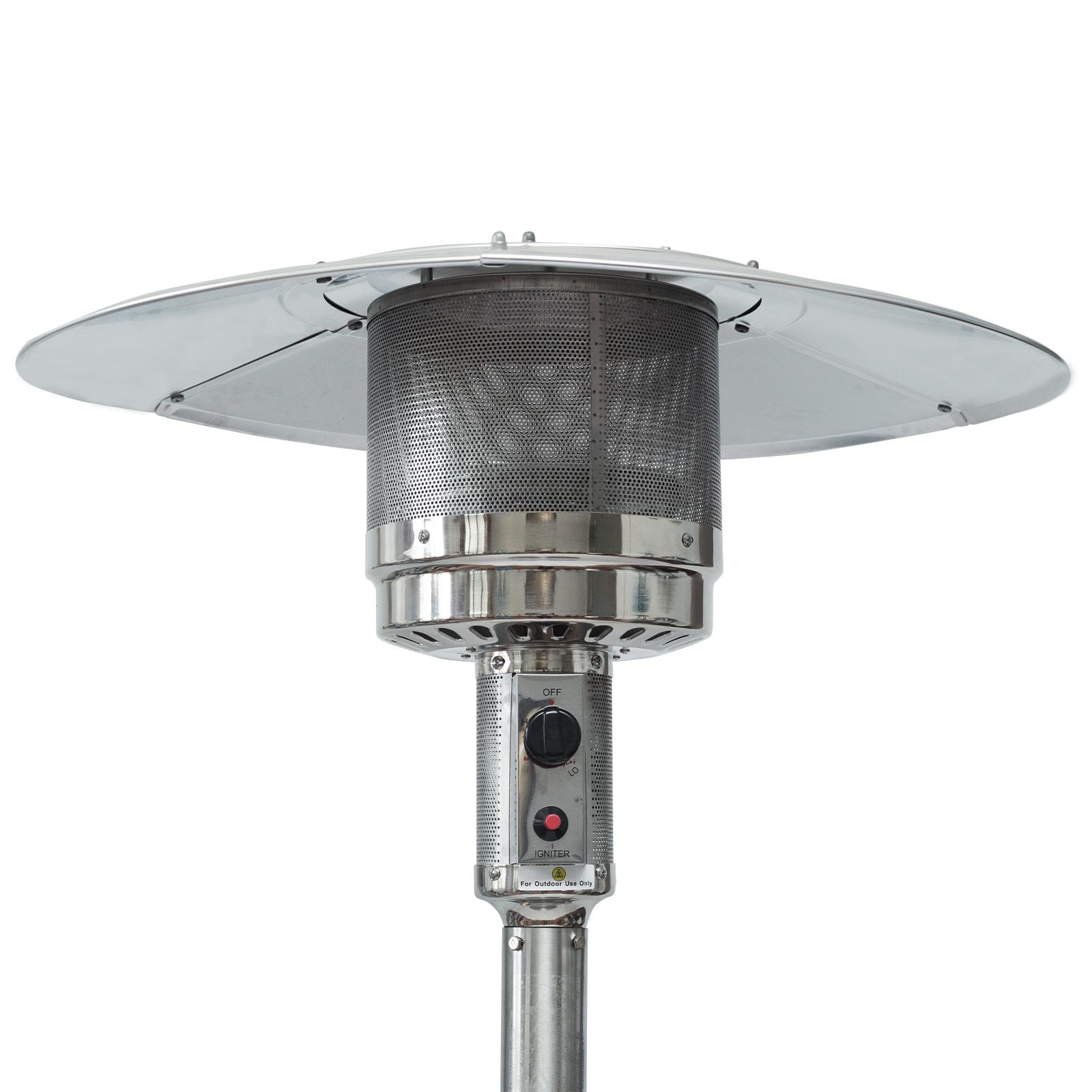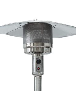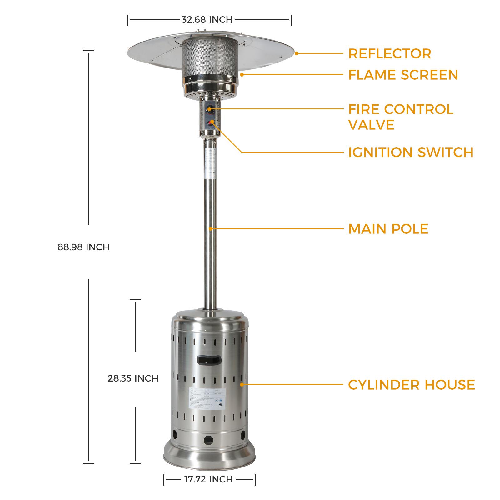 46000BTU Propane Stainless Steel Mushroom Outdoor Patio Heater with Hollow Pattern on Tank housing, with Two Smooth-rolling Wheels,with Hose Set,with black Cover,Pole in Two Pieces(Upper and Bottom)
