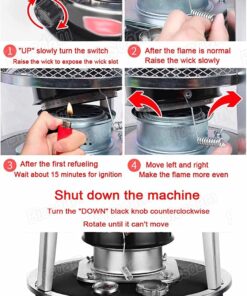 - ☀The indoor kerosene heater is made of special metal, the kerosene is fully burned, and the heating is faster. The kerosene mobile heater does not require electricity and is more efficient.