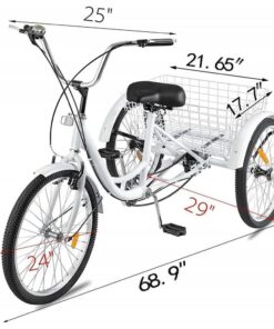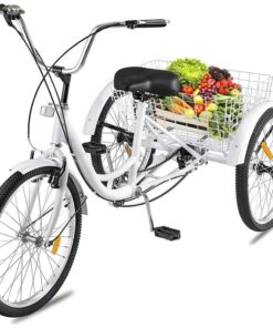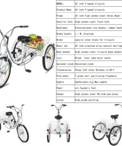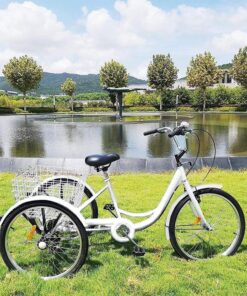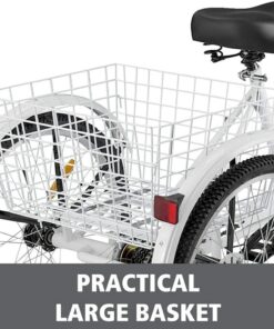 Adult Tricycle Bike, 7 Speed 24in 3-Wheel Bikes with Installation Tools, Three-Wheeled Bicycle Cruiser Tricycle with Shopping Basket for Recreation Shopping, Unisex Comfort Bikes Road Tricycle