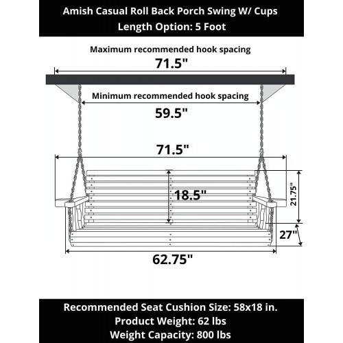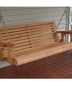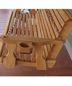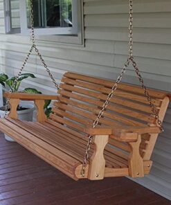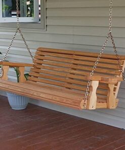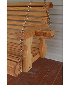 Amish Heavy Duty 800 Lb Roll Back 5ft. Treated Porch Swing with Cupholders – Cedar Stain