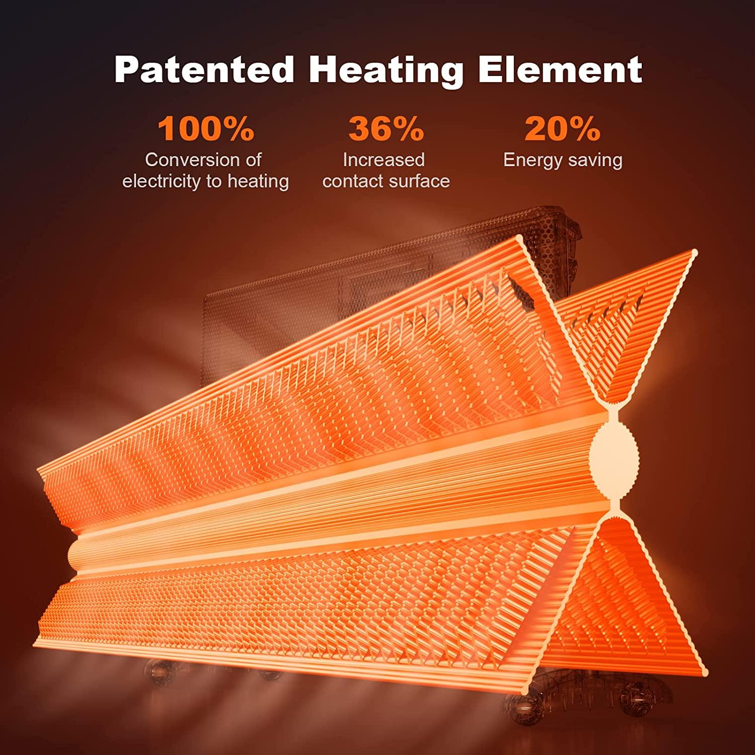 - 100% Conversion Efficiency:Built-in exclusive patented hedgehog heating element made of one-piece formed aerospace aluminum what enable 100% conversion of electrical energy to thermal energy output.The service life of the heater element exceeds 20 years in normal condition.