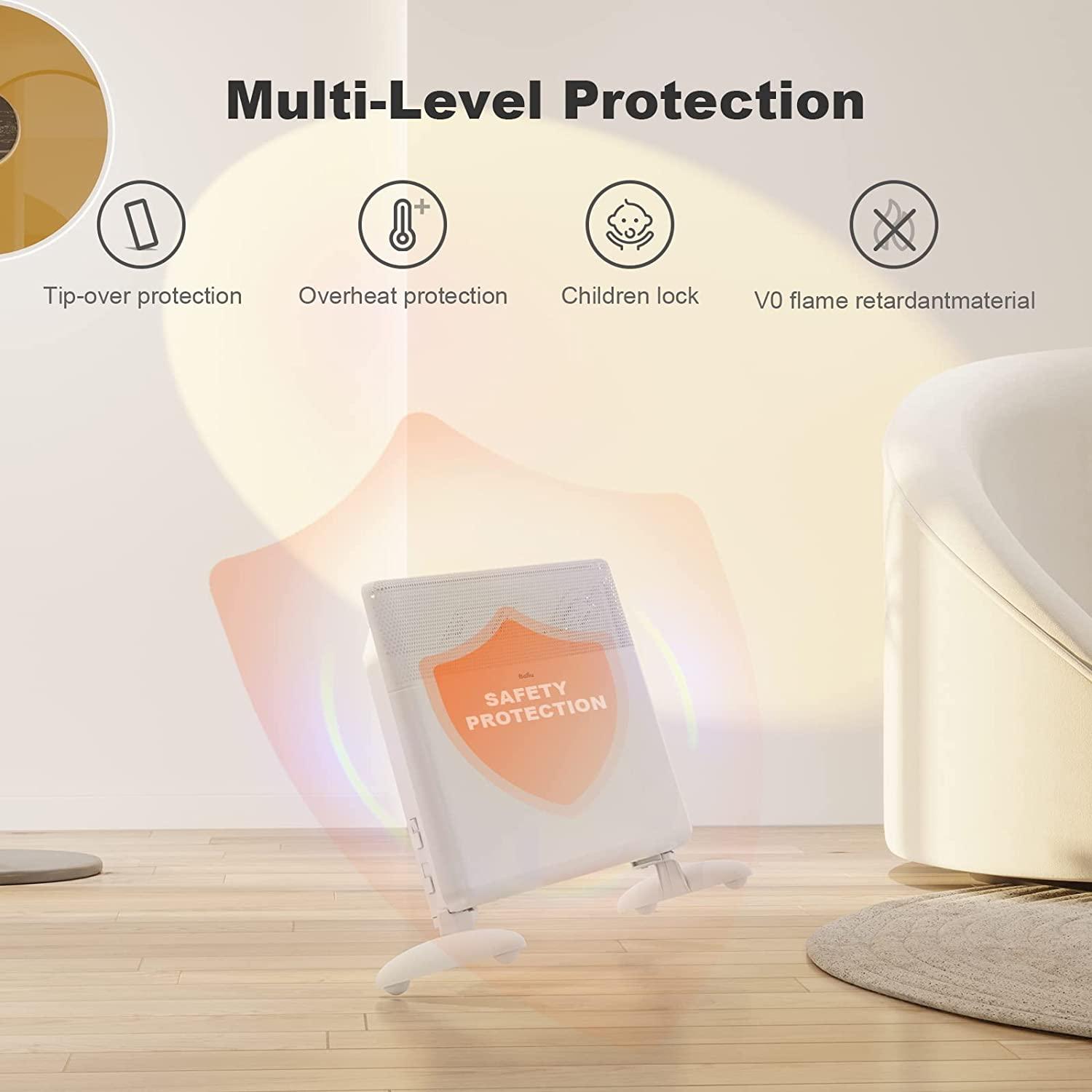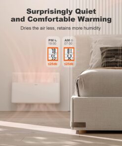 - Unique Comfortable Experience:Say goodbye to noise,cold and rhinitis.The electric room heater heating super quiet without noisy fans and does not consume oxygen and water.Maintain a warm, quiet and comfortable environment for you to work,study and sleep better.