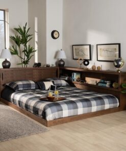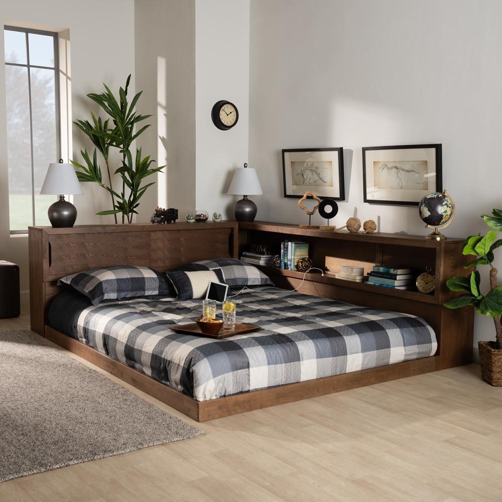Baxton Studio Erie Modern Rustic and Transitional Finished Wood Platform Storage Bed with Built-In Outlet
