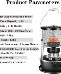 - ◆Retractable design: The protective cover of the portable kerosene stove heater adopts a retractable design, and the height of the cover can be ly controlled, up to 18.11 inches, and the lowest can reach 13.39 inches.