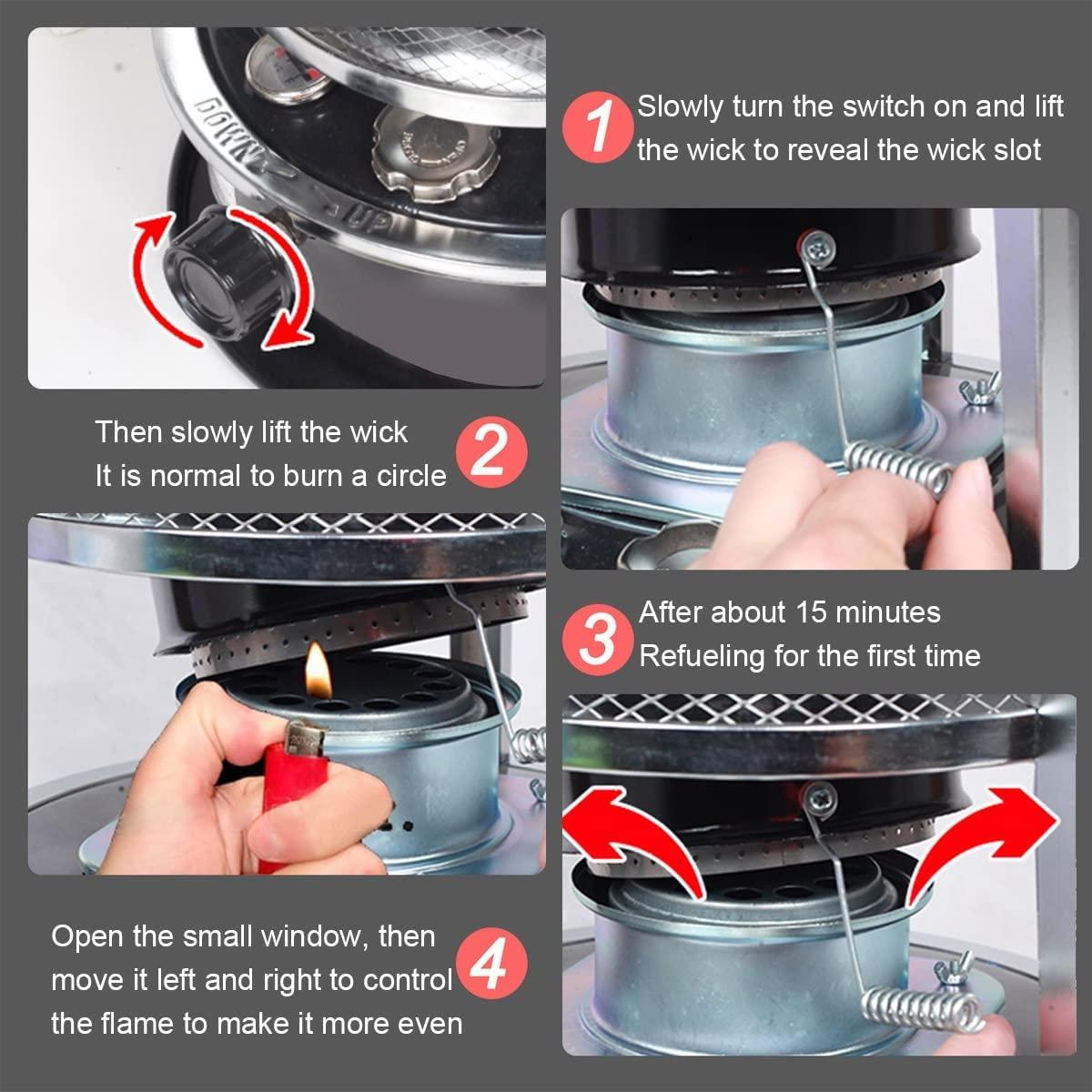 - ◆ Efficient heating: The combustion chimney of the non-electric heater is made of special metal to ensure that the kerosene is fully burned, and the heating is faster and more efficient. (No peculiar smell after full combustion)