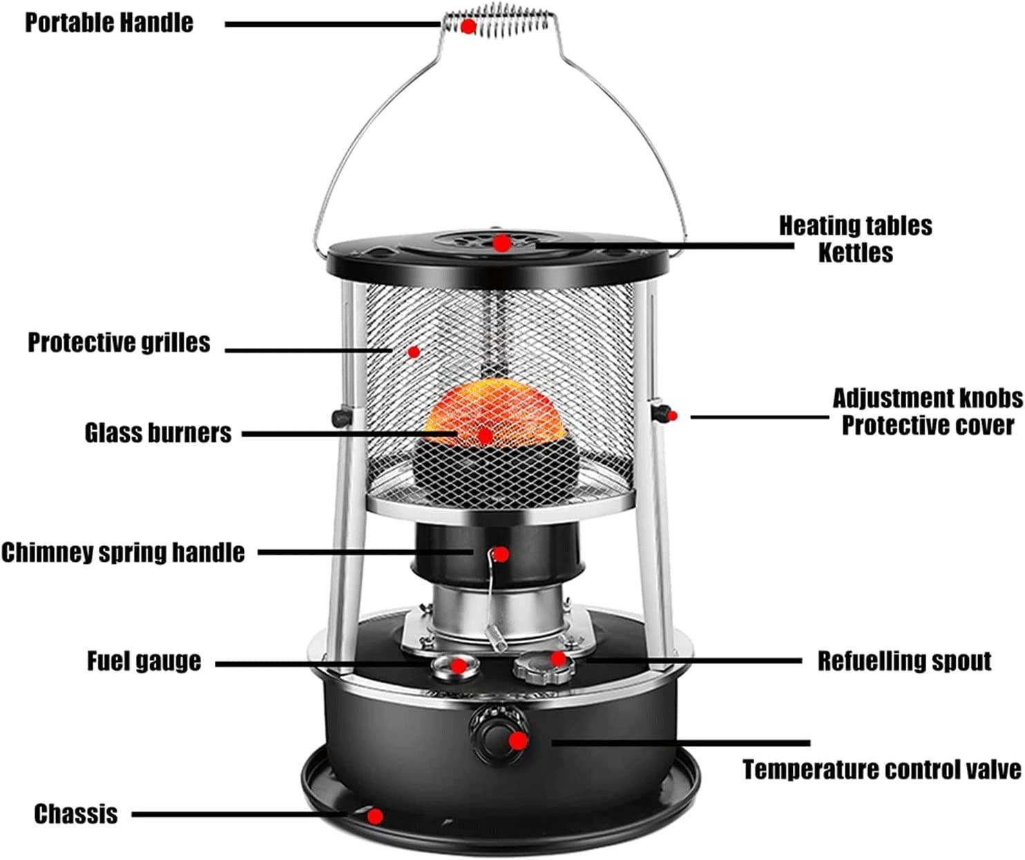 - 【No Electricity, Efficient Heating】: Excellent emergency heat source. Because the kerosene heater is made of special metal, the kerosene can burn completely without waiting for warmth. It heats up in 1 second after ignition, and it heats up instantly, no need to wait for it to heat up anytime, anywhere.