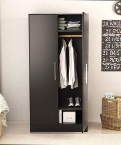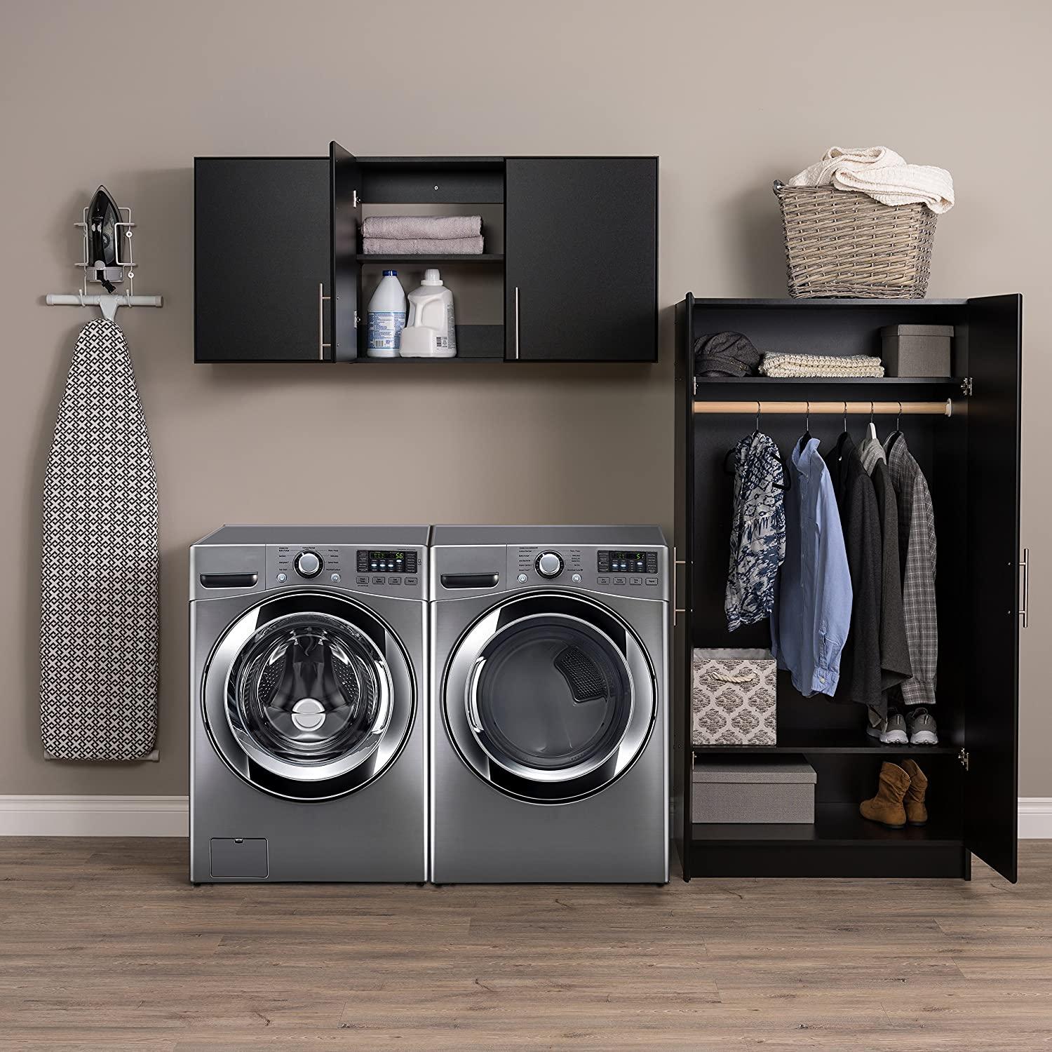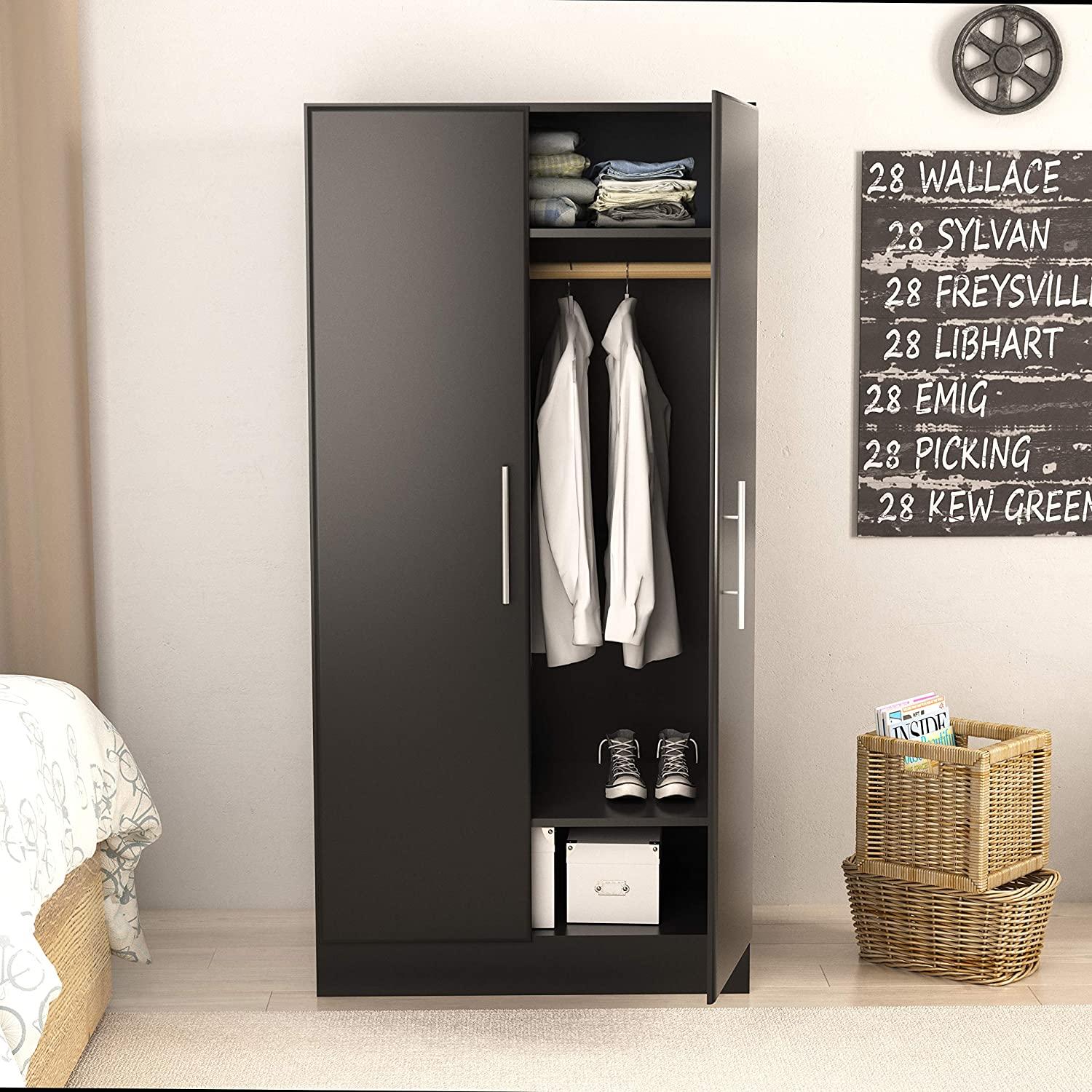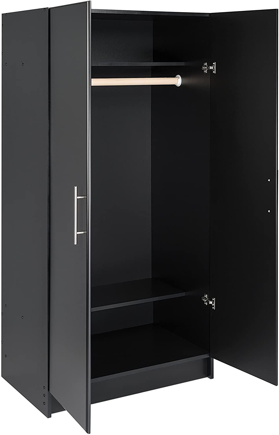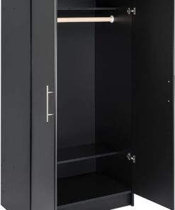 - 2 fixed shelves and 1 hanging rod; 20-inch depth accommodates hangers
