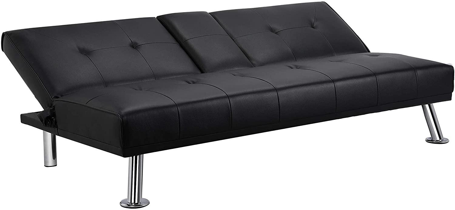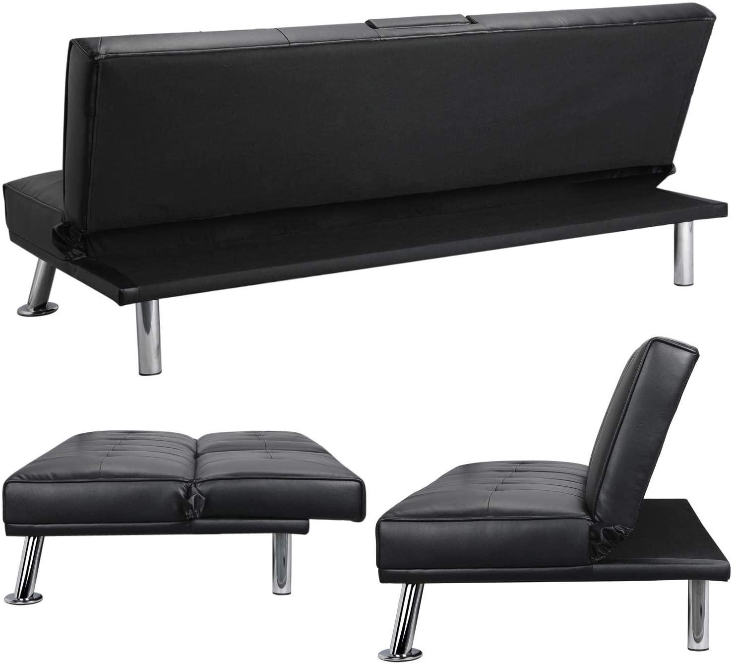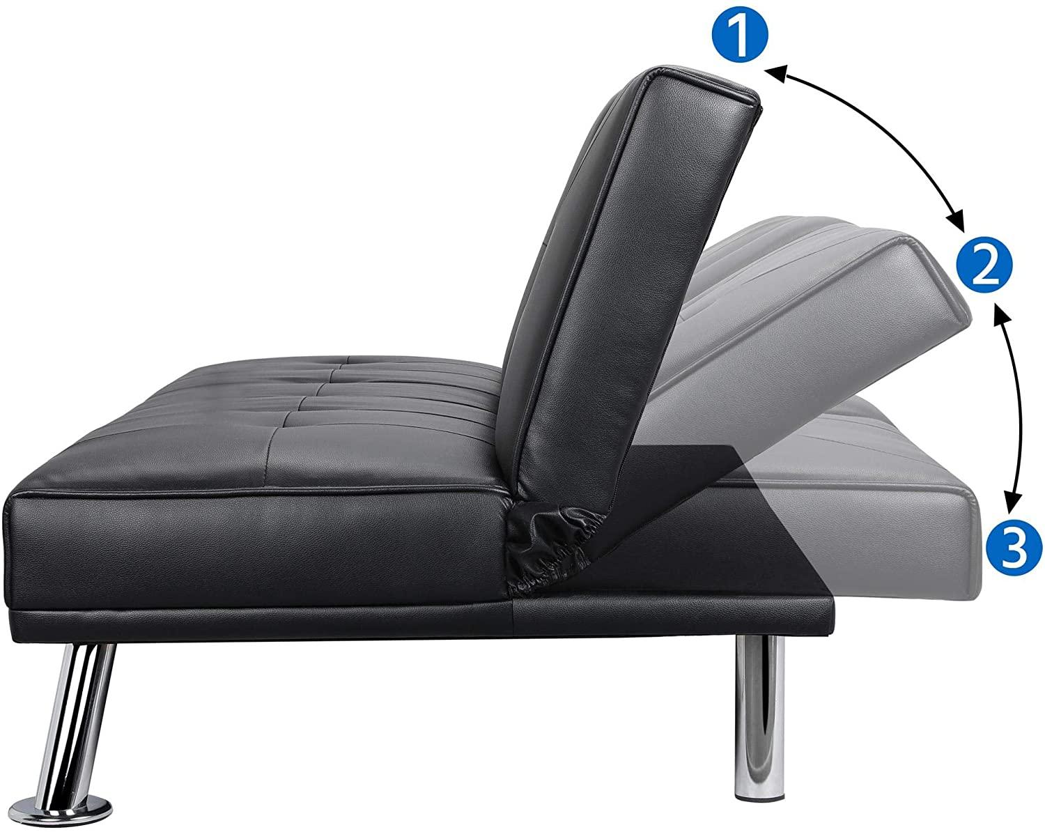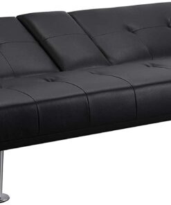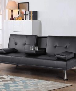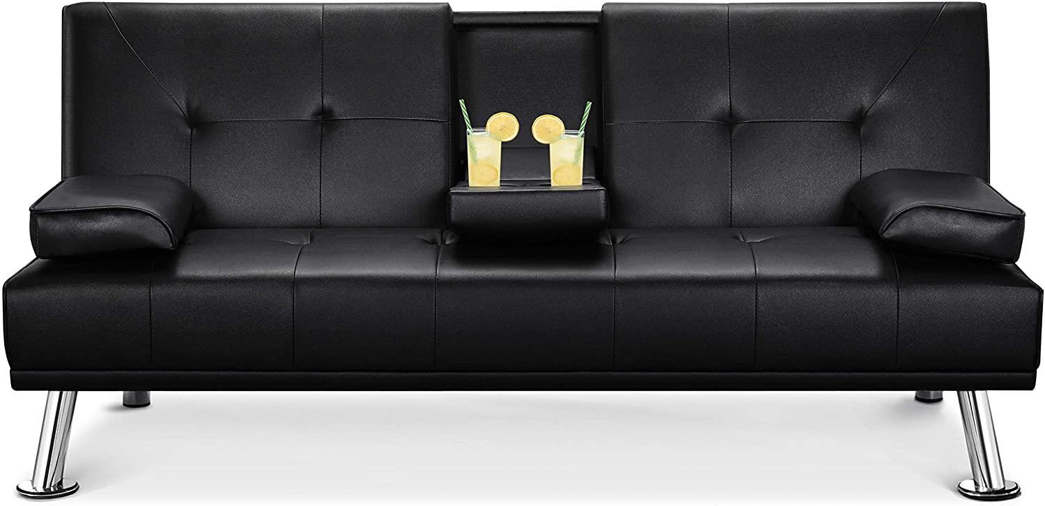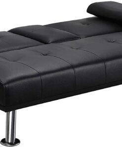 - Thoughtful Design: the futon sofa bed is designed for entertainment: the middle arm rest folds down with 2 cup holders, so you and your friend can relax and enjoy a couple of beverages.