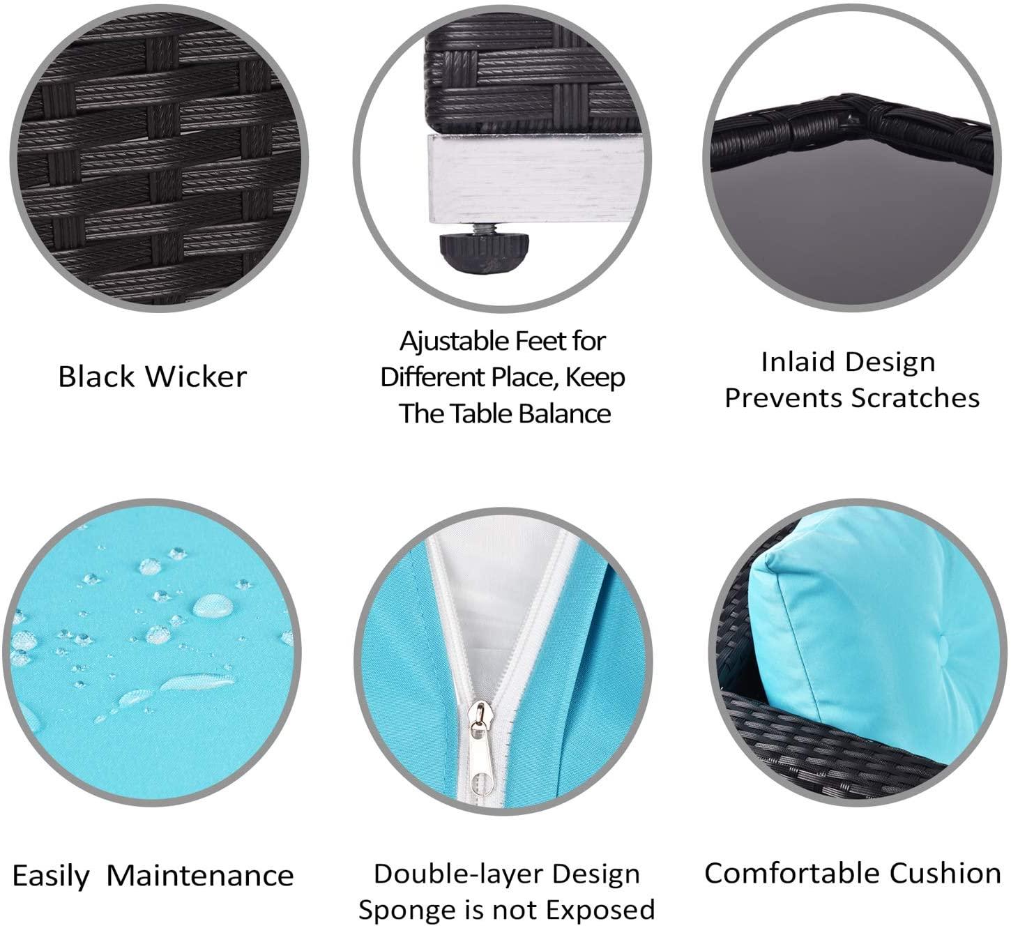 - Sturdy&Durable: Our rattan patio furniture set is made of brown/black PE rattan and strong steel frame, It is durable enough to withstand rain and wind for long time using. toughened glass is strong and light, which can be swabbed or washed with water.