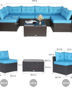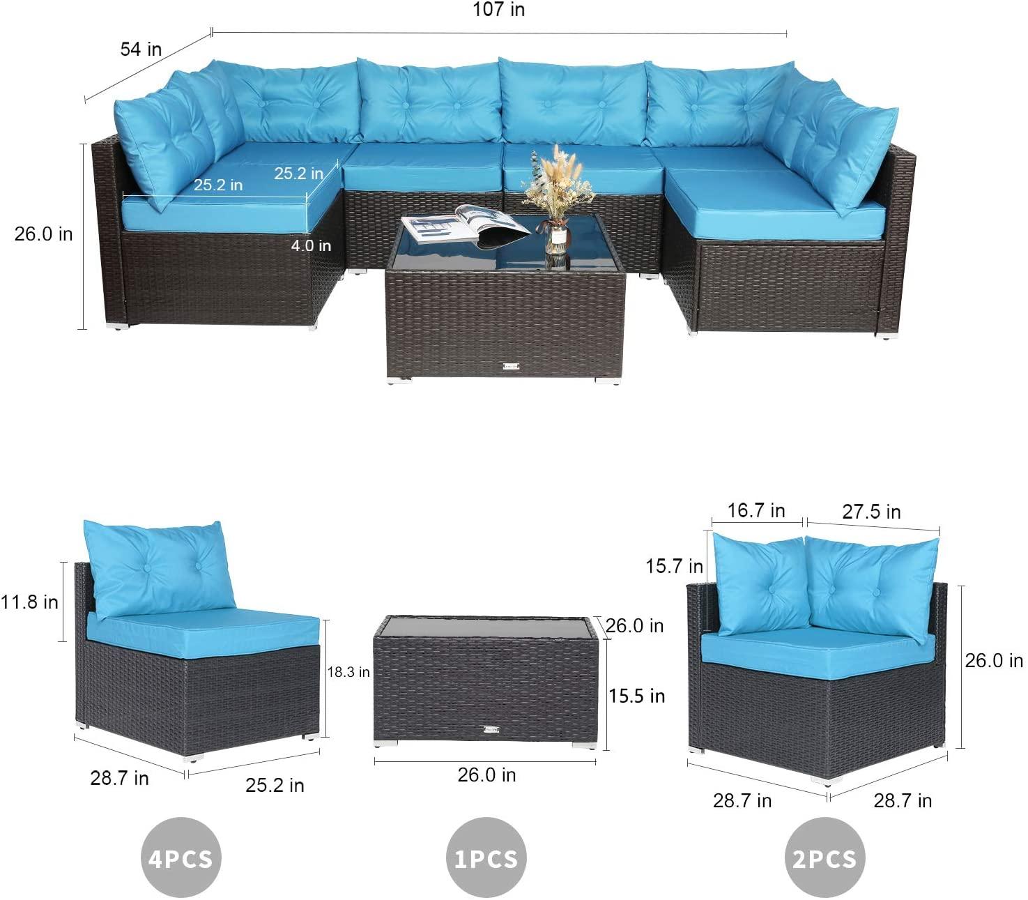 - Excellent Service:To make our customer satisfied, we provide 12-month warranty of the quality,we provide free parts replacement, 30-Day Return Policy, if you find any problem with the 7 pieces patio furniture sets, please don’t hesitate to contact us at first, we’ll solve your problem within 24 hours.