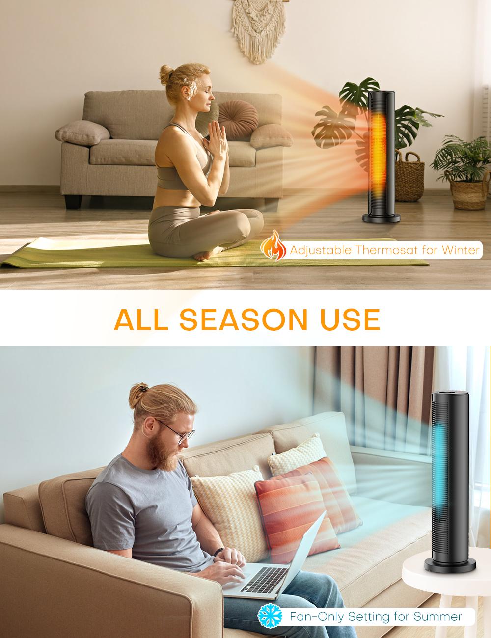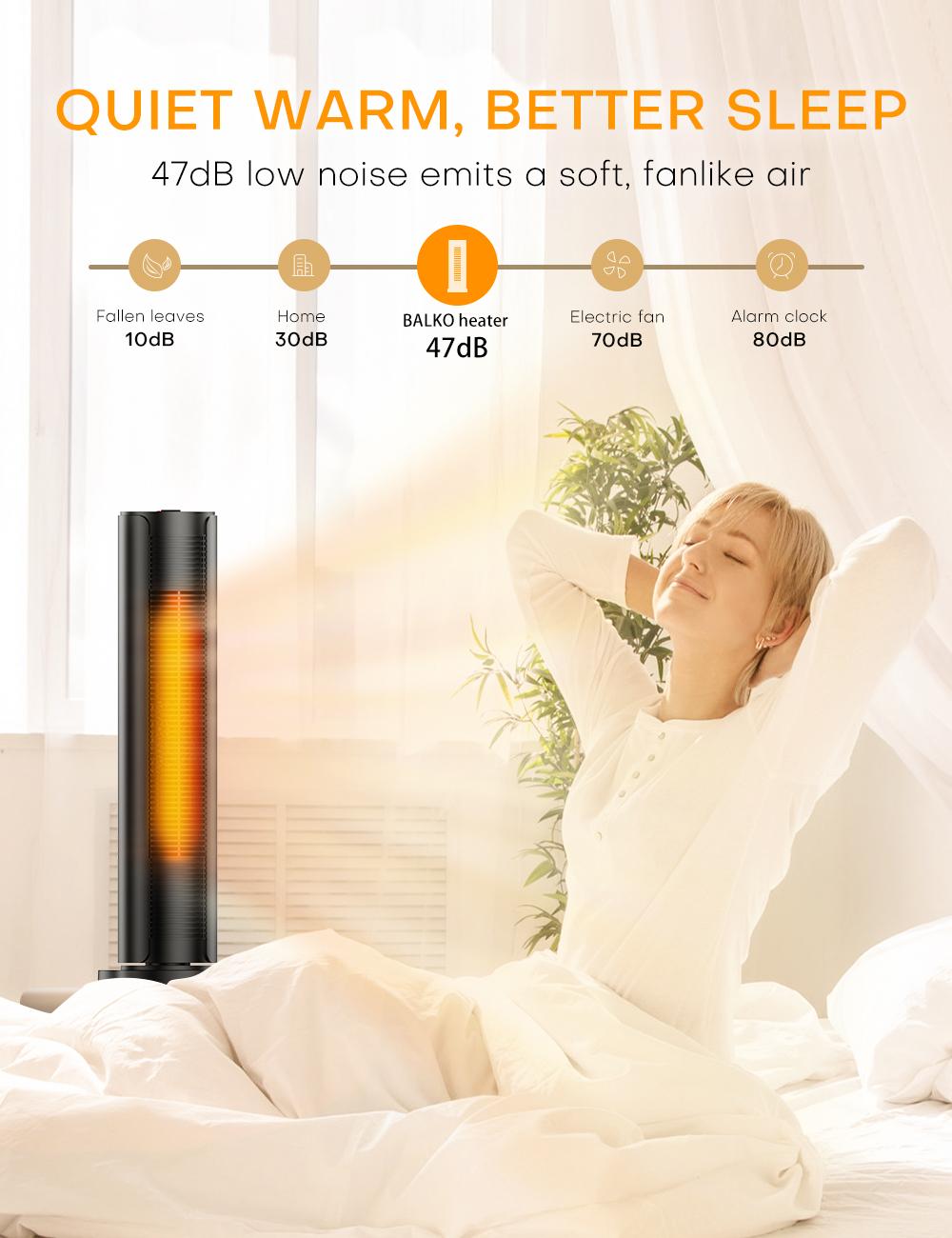 - 60°oscillation can distribute warmth effectively around the bedroom/bathroom/living room/office, pushing air farther away evenly.