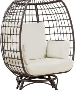 A statement piece for any backyard setting. This modern egg chair from our the world’s leading ready-to-assemble outdoor structure maker is the perfect place to snuggle up with a book or podcast. Its distinct shape can stand on its own in smaller spaces or easily blend into a larger lounge setting. Constructed of all-weather wicker on a rust-resistant powder-coated steel frame with an open weave design. The contemporary chair sits on a swivel base. The thick and removable white cushions are made of weather-resistant fabric that can withstand the seasons.