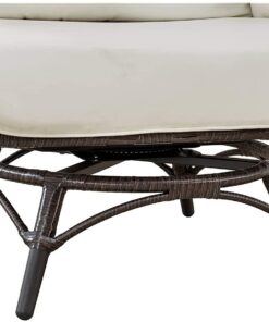 - Brown all-weather wicker and rust-resistant powder-coated steel chair