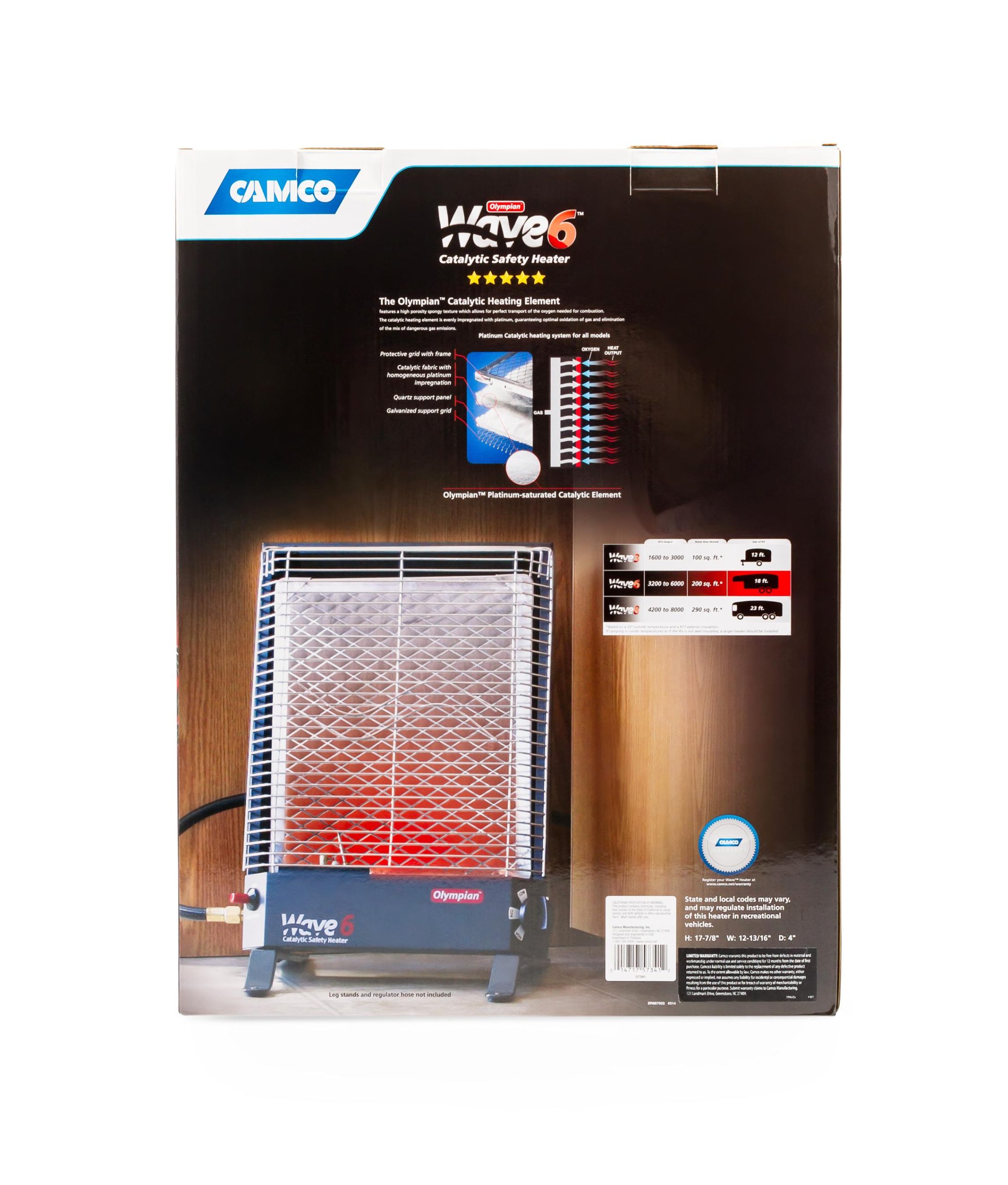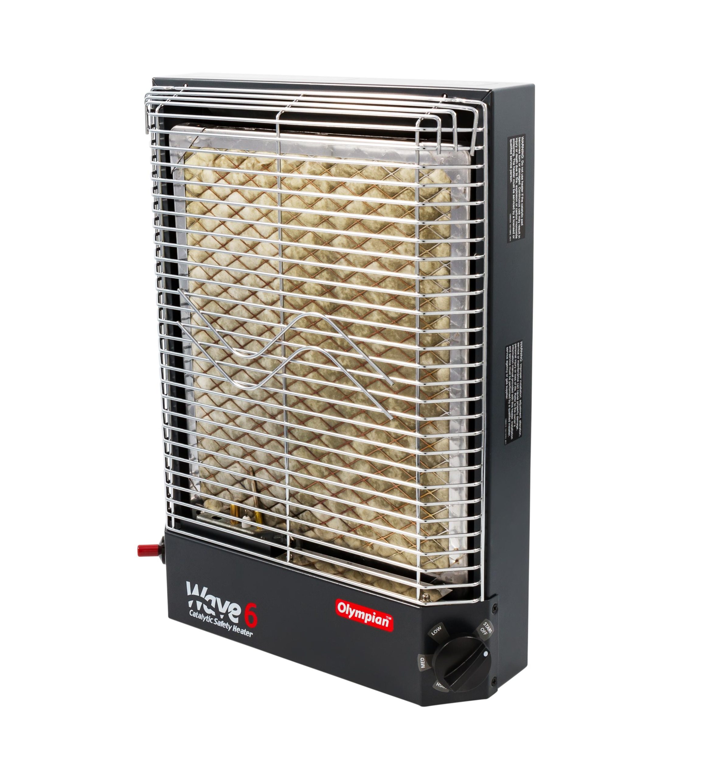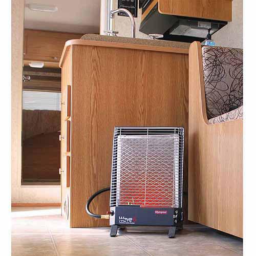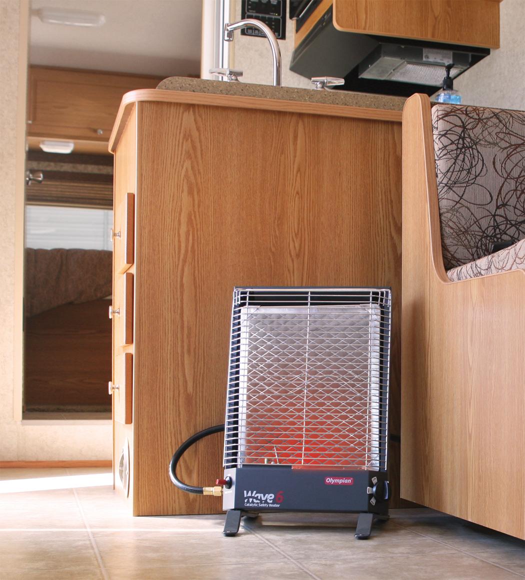 Can be used inside an RV as a portable unit (with leg stands) or permanently mounted. Wave Heaters can also be used outdoors as portable units (with optional leg stands, LP cylinder, regulator and hose assembly, all sold separately). No flame, no flue or chimney, no fan or blower and no noise.