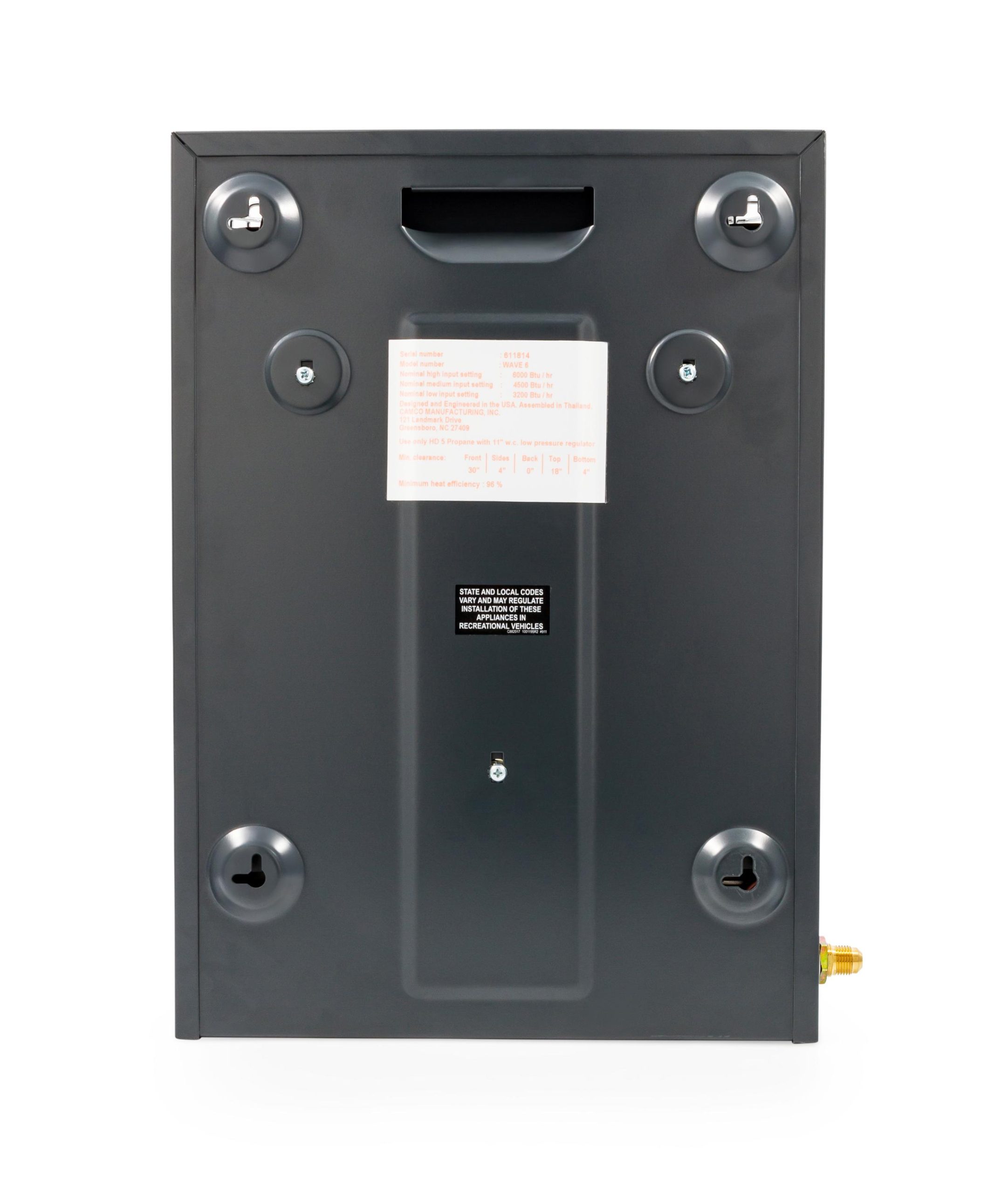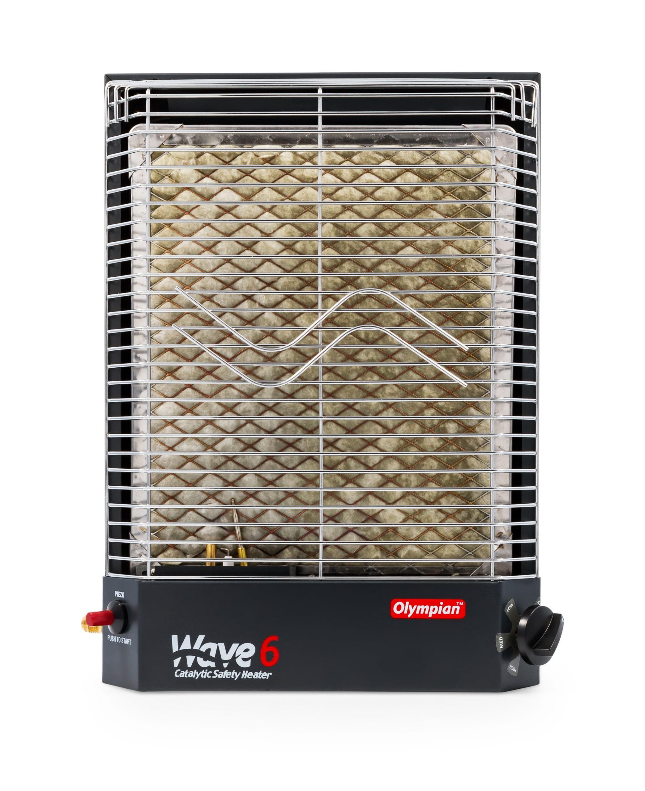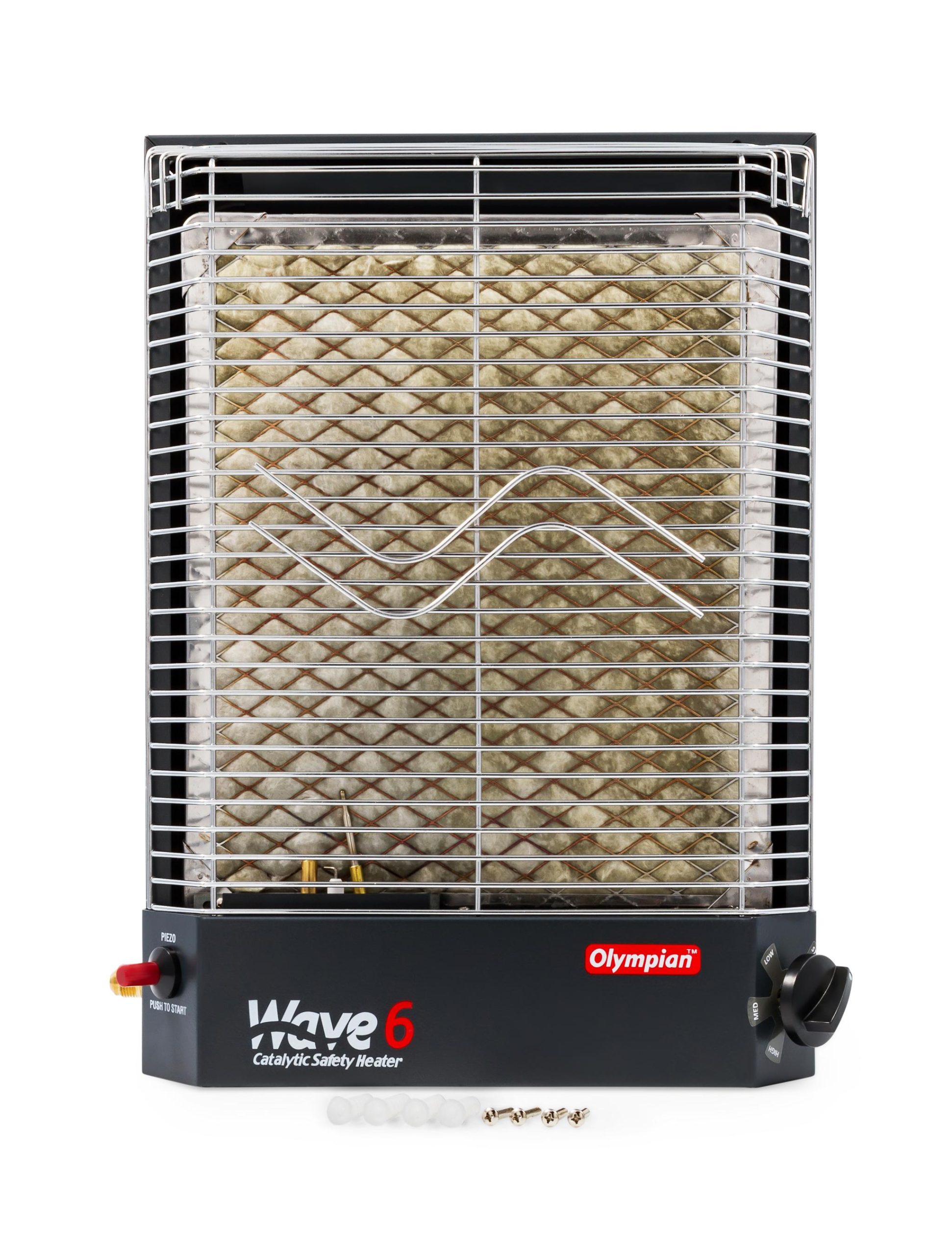 Can be used inside an RV as a portable unit (with leg stands) or permanently mounted. Wave Heaters can also be used outdoors as portable units (with optional leg stands, LP cylinder, regulator and hose assembly, all sold separately). No flame, no flue or chimney, no fan or blower and no noise.