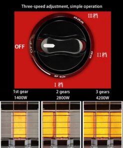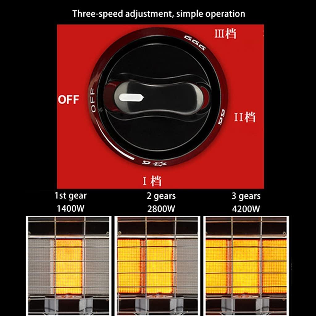 - High efficiency: Choose 1.4 KW, 2.8 KW or 4.2 KW 3 heating gears to distribute the required heat to an area of ​​up to 40 square meters. Depending on the power used, its consumption varies from 110 to 305 g/h