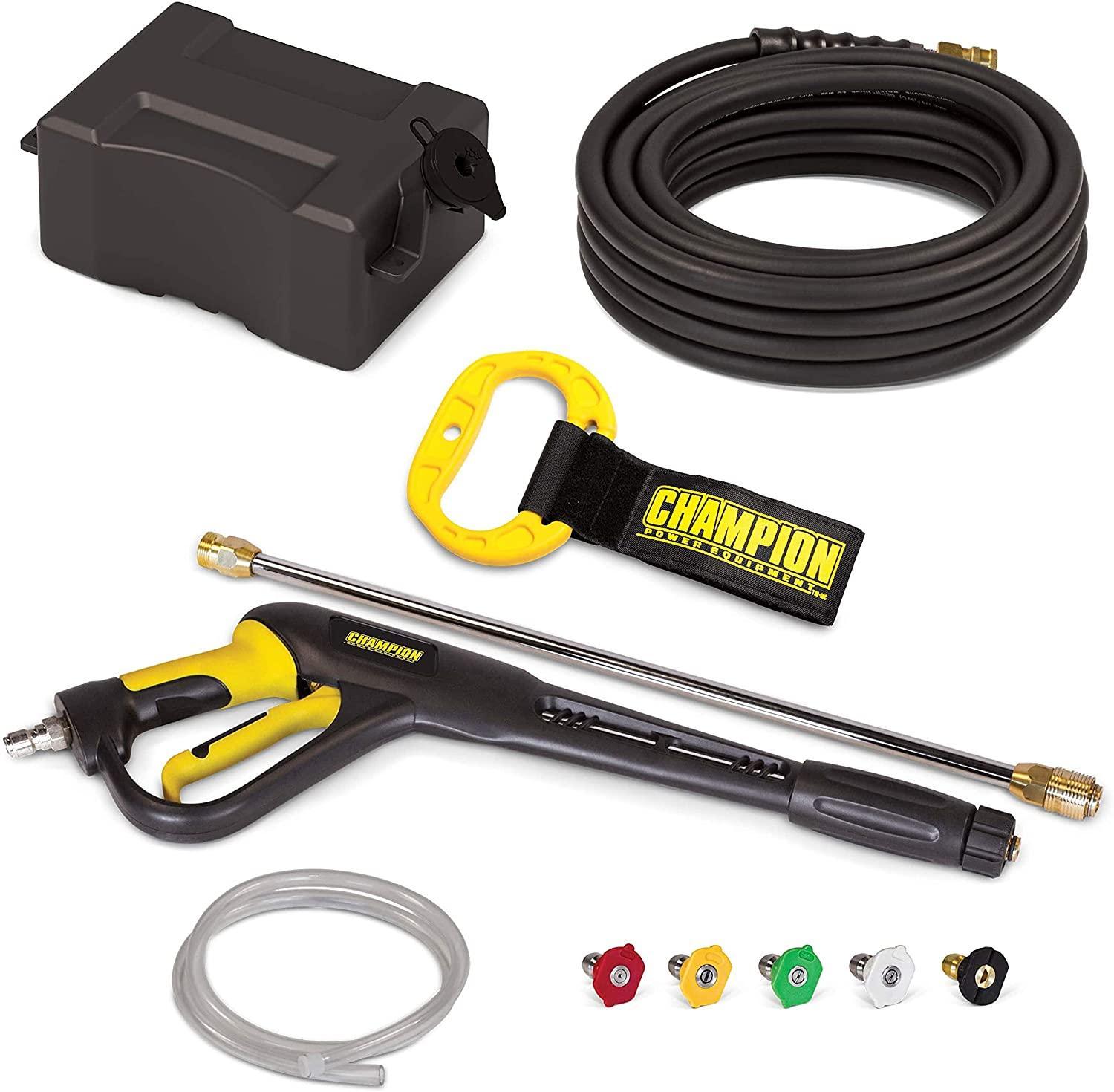 - VERSATILE: Quick-connect gun, wand and five nozzles, a 50-foot commercial-grade steel braid reinforced, rubber high-pressure hose with Quick Connects plus a detergent hose for the detergent tank