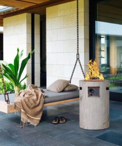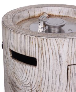 This 30,000BTU propane fire pit adds a touch of romance to your outdoor space. Made of strong and lightweight Ore powder and Magnesium Oxide, it will not harm your body or the surrounding environment, and can provide you with a comfortable experience.This product adopts a cylindrical outline with a rustic wood finish, which brings modern and natural style to your outdoor decoration.