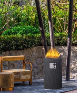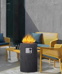 This 30,000BTU propane fire pit adds a touch of romance to your outdoor space. Made of strong and lightweight Ore powder and Magnesium Oxide, it will not harm your body or the surrounding environment, and can provide you with a comfortable experience.This product adopts a cylindrical outline with a rustic wood finish, which brings modern and natural style to your outdoor decoration.