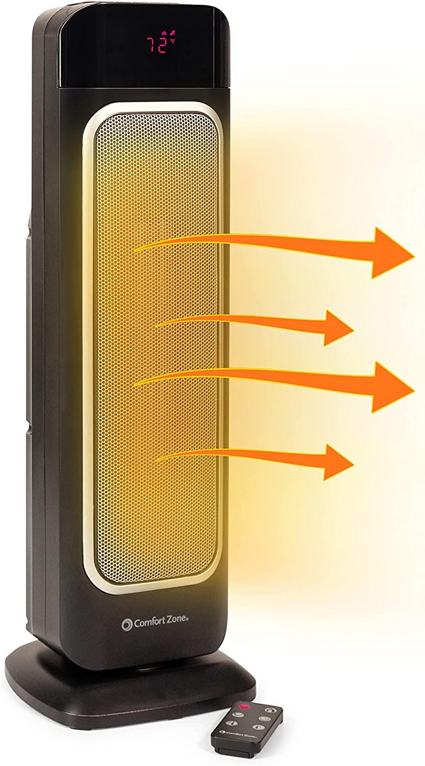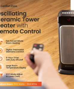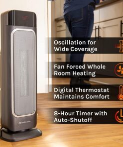 - OSCILLATING DESIGN: With a fan-forced, oscillating design, this tower heater circulates air evenly throughout the room for comfortable, whole room heating