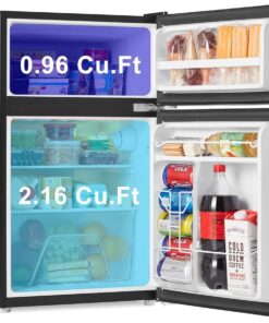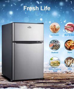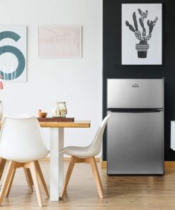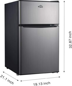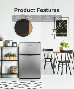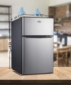 - 【COMPACT & STYLISH】 This space saving refrigerator (19.13*21.10*32.80 inches) stores food, soda, beer, and other beverages with minimal energy and without taking up too much space. The sleek, modern design refrigerator is perfect for college dorm rooms, offices, garages, home bars.