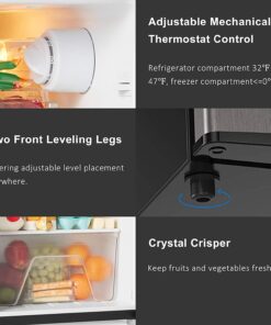 - 【ADJUSTABLE MECHANICAL THERMOSTAT CONTROL】Refrigerator can be controlled manually with the control dial from 0-7, you can turn the knob to set the temperature you want. And the temperature range for refrigerator compartment is 32°F to 47°F, freeze compartment<=0°F.
