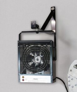 Dimplex 240 volt electric garage heater heavy duty steel unit heats fast thanks to the powerful fan and the 4000 watt stainless steel heater element. It comes with a versatile bracket that attaches to the wall or ceiling. The bracket allows the heater to swivel and direct the heat where required. The heater’s mounting hardware allows the direction of airflow to be adjusted up or down. Additionally, the heater can be placed onto a workbench or other solid surface. The DGW garage / workshop heater comes complete with an automatic temperature control to maintain consistent temperature. The unit has a powder coated epoxy finish, and the casing element and fan blade are corrosion resistant, all designed to provide long product life. If the airflow should become restricted for any reason, the unit automatically shuts off.