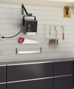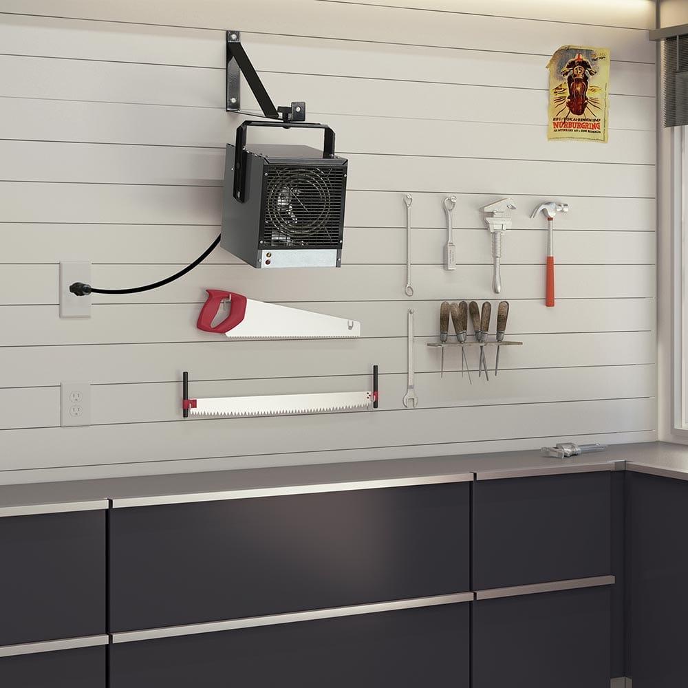 - Heavy-duty stainless steel garage heater features a powder-coated epoxy finish with corrosion-resistant heating elements to ensure durability