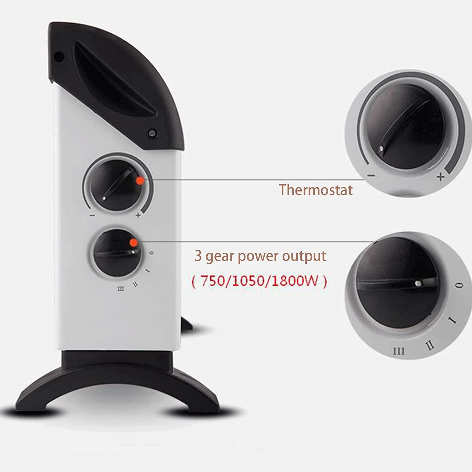 - This heater comes with 3 different heat setting: 750w, 1050w and 1800w,You can choose the most suitable setting according to your needs