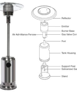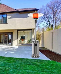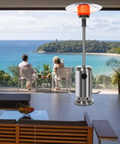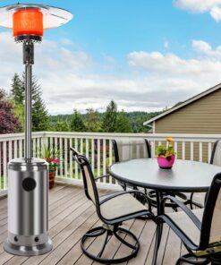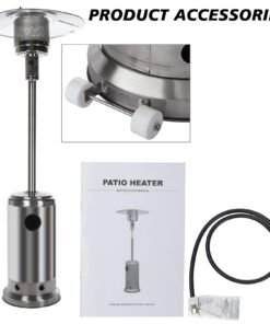 Wheels for Smooth Mobility :A wheel assembly with two smooth-rolling wheels comes included, making it easy to transport the outdoor heater from poolside to patio or from one side of the deck to the other; Heat Output: 46,000 BTU; Heat Range: 10m(32.8′ Radius) Patio heater: