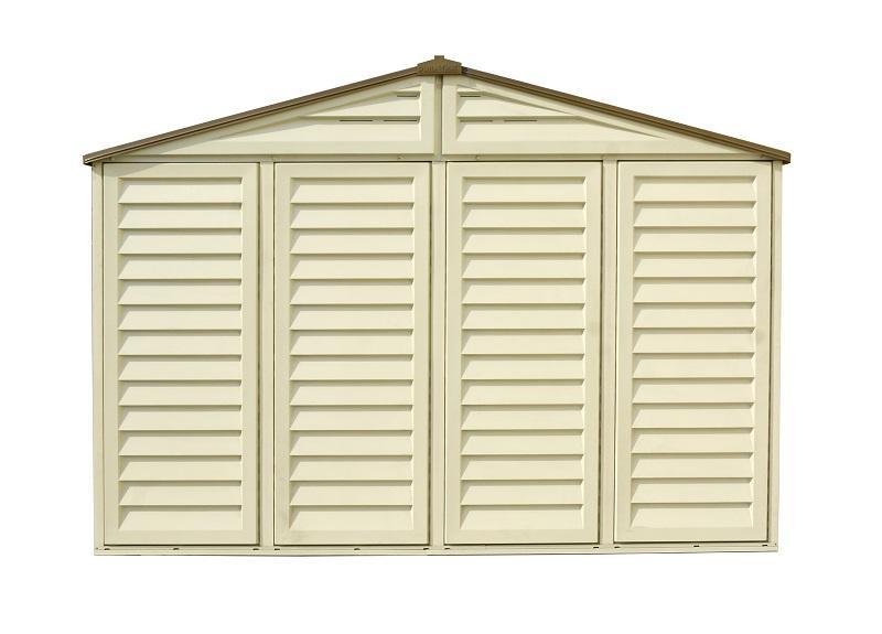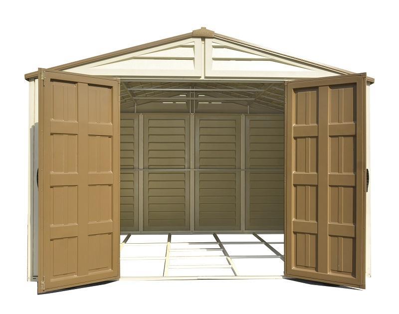 Available in 8’, 10’ and 13’ deep sizes to give you 480 to 953 cubic feet of storage space. There’s just no better valued vinyl storage shed in the market place today! As you would expect from a large storage shed, this walk-in shed features tall and wide double doors. The wall columns are reinforced with a solid metal structure that gives the shed strength and allows you to hang shelves or garden tools. These large storage sheds can also be used as hobby or activity rooms.