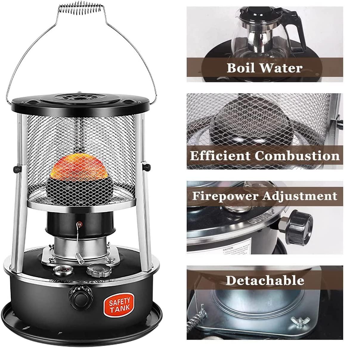 - ?Energy saving and protection design: Portable kerosene stoves do not require electric heating. All you need is kerosene and you’ll have tons of heat. Don’t worry about power outages when hurricanes, heavy rain and snow come. The kerosene stove has the characteristics of quietness, energy saving and environmental protection. (proper ventilation is recommended).