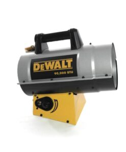 The DXH90FAV forced air propane heater burns at 90,000 BTU and can be adjusted down 50,000 BTU. Equipped with Quiet Burner Technology this heater operates with 50% less noise than standard units of similar size. Includes a 20 ft hose and regulator, and is manufactured with a large ergonomic handle and a split barrel design for easy maintenance. when operated with a 40 lb propane tank you can heat approximately 2,250 sq ft of space for around 10 hours on high or 17 hours on low.