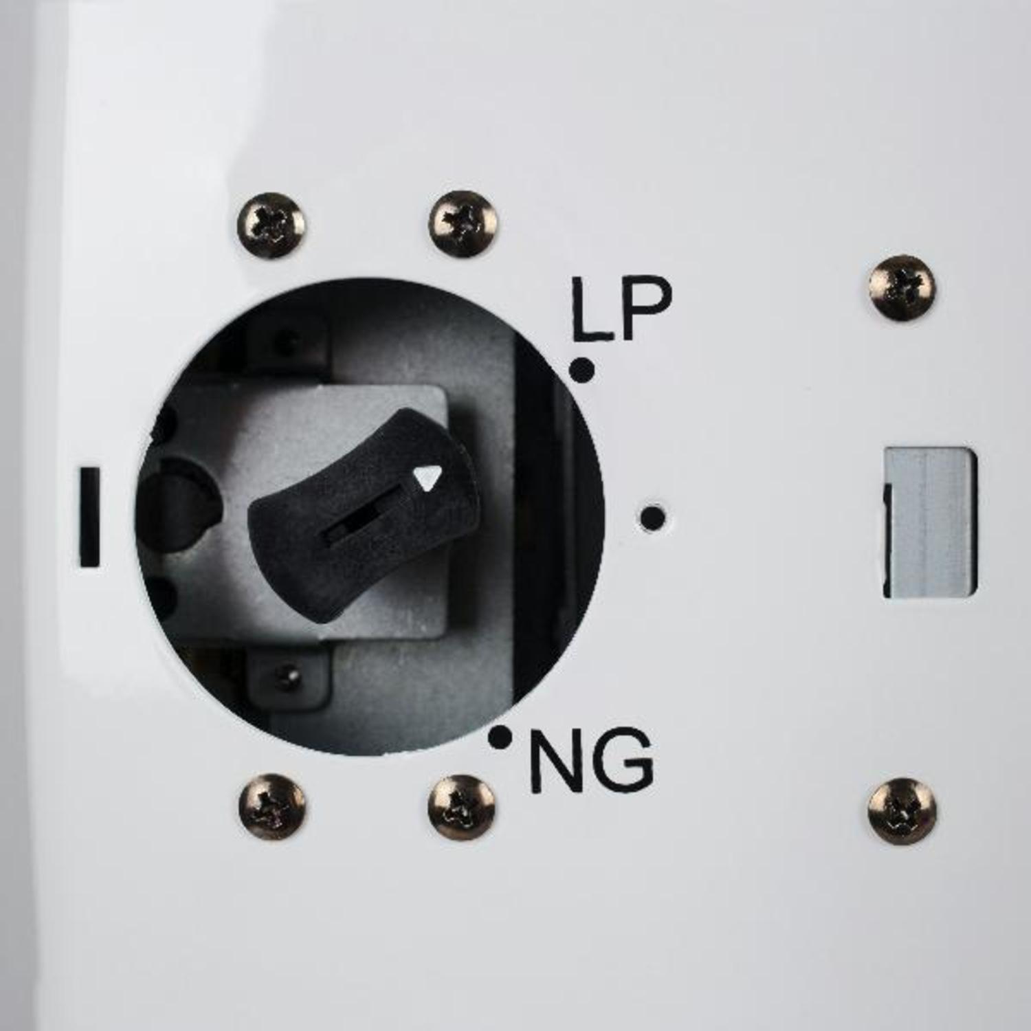 - Dual gas technology allows the unit to be operated with LP or natural gas.