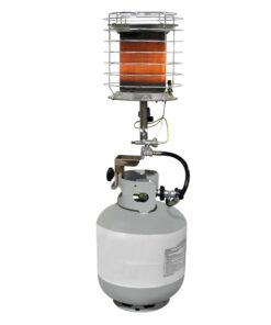 This Dyna Glo TT360DG 40000 LP 360 Tank Top Heater is the ideal portable solution for properly ventilated indoor/outdoor construction use. The 360° burner and stainless-steel heat reflectors provide efficient heat in all directions, while covering up to 1,000 square feet. This portable tank top heater is equipped with three heat settings for ideal comfort control. A rust-proof chrome guard, safety shut-off valve and a CSA-certified tip over safety switch help ensure safe operation. This Dyna Glo TT360DG 40000 LP 360 Tank Top Heater has a compact design and can be easily assembled for your convenience. It has a variable output that ranges between 30,000 and 40,000 BTUs to keep your job site at the proper temperature at all times. This Dyna Glo tank top heater has a two screw assembly and quick-connect hand wheel so you can be up and running quickly and easily.
