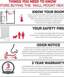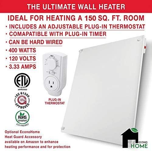 - SAFE AND EFFICIENT TECHNOLOGY: This electric wall heater operates at a constant temperature persistently. It ignites with minimal radiant heat which transmits to convection currents that rise from behind the heating panel and circulates heated air around the room. WE RECOMMEND BUYING THE HEAT GUARD ACCESSORY to go along with this heater because it doubles the efficiency of the convection currents, and its exterior casings stay warm and safe to touch.