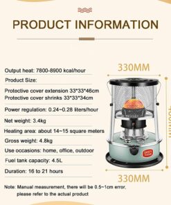 - ?Energy-saving design: Portable kerosene stoves do not require electric heating. Compared to electric heaters, kerosene stoves can quickly heat a room without drying it out. Also very useful during power outages or disasters.